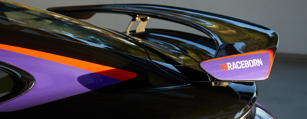 A execução da pintura, realizada integralmente e não em vinil, reflete a preocupação com autenticidade e rigor, replicando elementos específicos do carro de competição, incluindo detalhes funcionais como o código de cores nas rodas, inspirado nos procedimentos utilizados em pista.