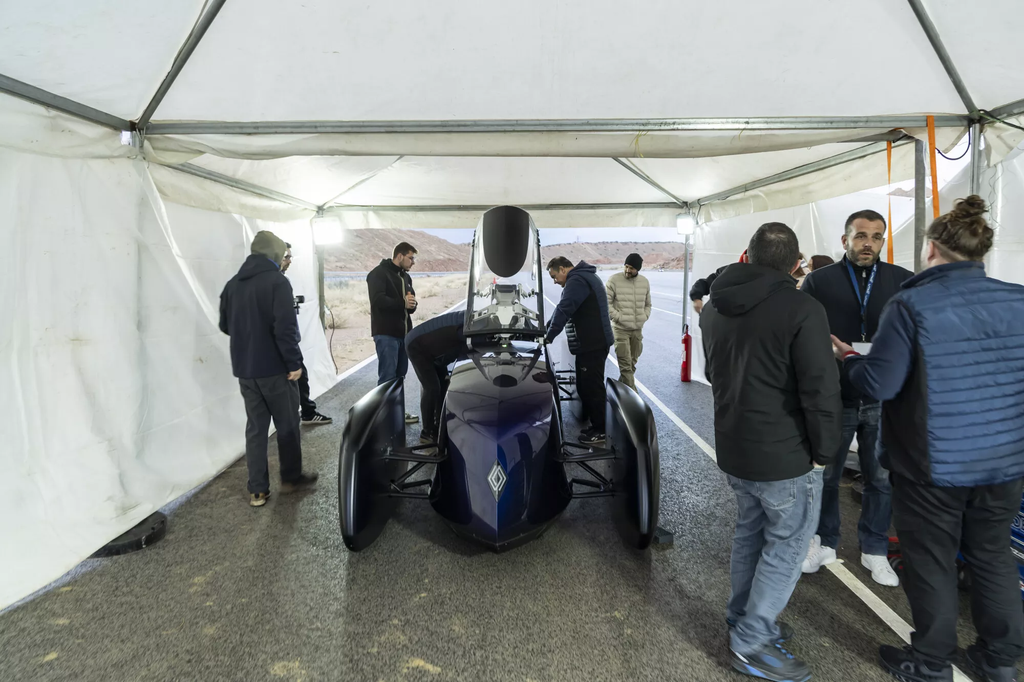 Os testes em túnel de vento realizados na primavera de 2025 levaram a uma revisão profunda do desenho aerodinâmico. As carenagens das rodas foram redesenhadas e montadas diretamente sobre estas, melhorando o escoamento do ar. O trabalho permitiu reduzir significativamente o coeficiente de arrasto, aproximando-o dos 0,30, um valor crítico para alcançar o objetivo definido.