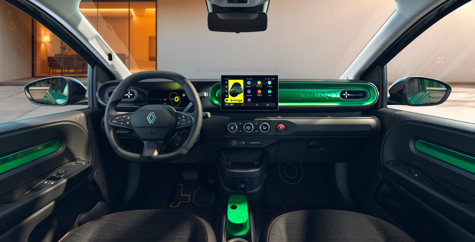 O Twingo E-Tech Elétrico mantém o design expressivo e otimista que sempre caracterizou o modelo, agora reinterpretado para a era elétrica. As suas proporções compactas escondem um habitáculo notavelmente modular, com cinco portas, dois bancos traseiros deslizantes independentes e encosto rebatível no banco do passageiro dianteiro.
